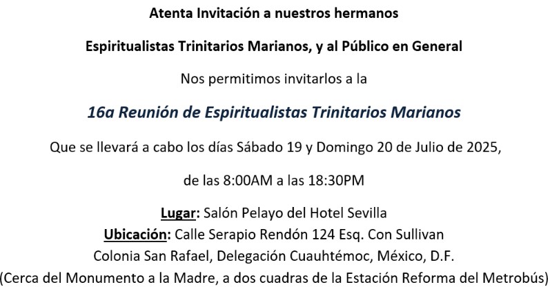 Grabación de Audio de la Mesa Redonda "Salud y Sanación. Cómo Impartir el Bálsamo como Espiritualistas Trinitarios Marianos", que se llevó a cabo en Marzo-27-2022, en la siguiente liga: Salud y Sanación. Cómo Impartir el Bálsamo como Espiritualistas Trinitarios Marianos |